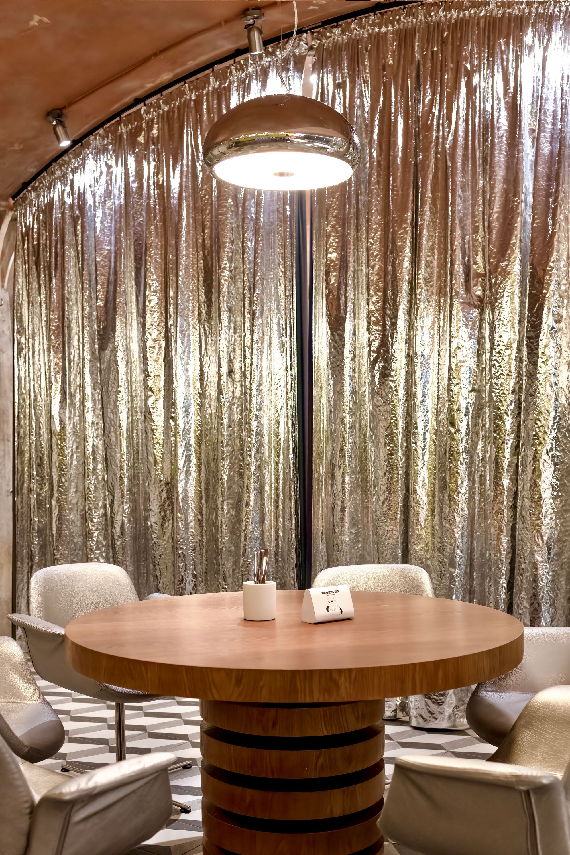 Новое заведение, интерьер которого создавался дизайнером Катей Корчиновой — фьюжн фантастической атмосферы, невероятных коктейлей и закусок. Яркие «фишки» и элементы — от стильных люстр-шаров и пола с абстрактным узором до неонового коридора и робот-бара, который таит в себе все вкусы прошлого и будущего — всё это запомнится вам надолго.