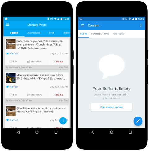 Функциональность обоих приложений полностью повторяет веб-версию. К сожалению, часть функций в Buffer будет закрыта на бесплатном тарифе. С другой стороны, приложение SocialPilot более «сырое». Исходя из всего вышесказанного, здесь выигрывает Buffer.