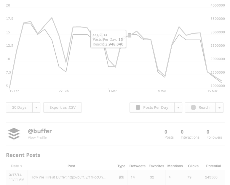 Аналитика помогает лучше понять, какой контент наиболее популярен у ваших читателей. В этой категории, бесспорно, побеждает Buffer. Посмотрите на скриншот ниже. Это всё, что умеет SocialPilot. Красиво, но абсолютно бесполезно.