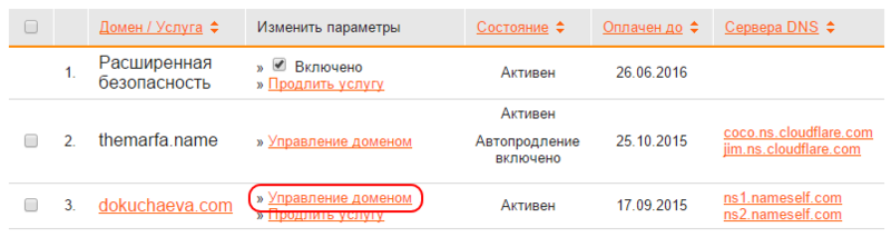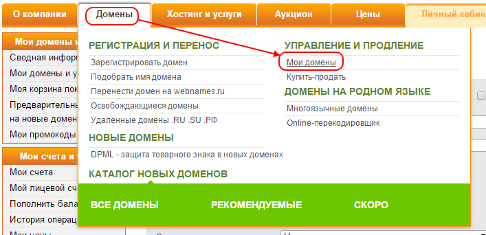 Первым делом вам нужно перейти в раздел «Мои домены и услуги»: