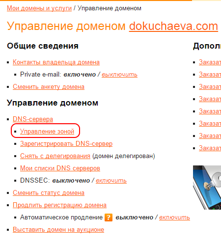 После совершения этих действий станет доступным раздел «Управление зоной», где можно указать A и CNAME записи: