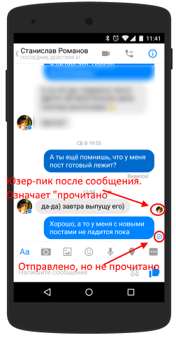 Понять прочли ли ваше сообщение в приложении Facebook очень легко, что наглядно показано на этом скриншоте: