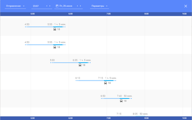 А при нажатии на «Подробнее» вы увидите варианты отправления в любое другое время: