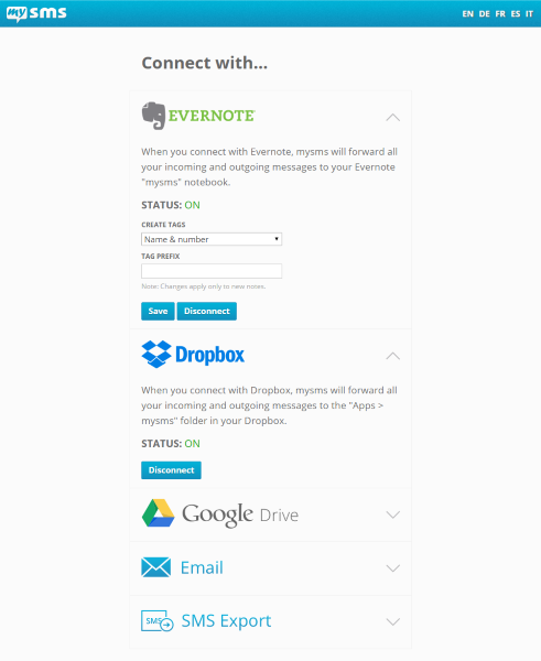 При помощи MySMS можно настроить бэкап в Evernote, Dropbox, Google Drive, на почту или просто экспортировать все сообщения.