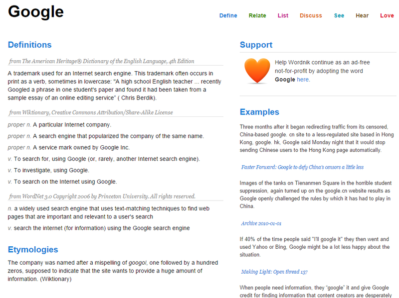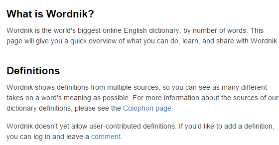 Если вам нужно быстро узнать точное определение английского слова или даже целой фразы, то самое время посетить сайт Wordnik. Сайт позволяет получить определение из нескольких источников, а также покажет примеры использования.