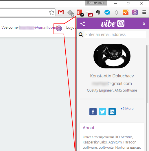 За каждым человеком стоит сильная женщина скрывается e-mail адрес, а за каждым адресом скрывается живой человек. Чтобы узнать, кому принадлежит e-mail, который вы видите на странице, приходится пользоваться Google, в надежде, что хотя бы он что-то да знает. Однако есть способ проще. К примеру, расширение для браузера Vibe.