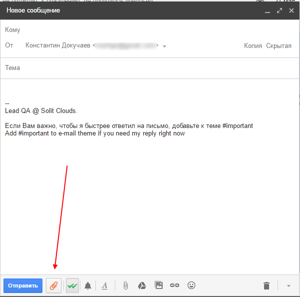 После установки расширения, когда вы начнёте писать новое письмо, внизу вы увидите оранжевую «скрепочку» сервиса.