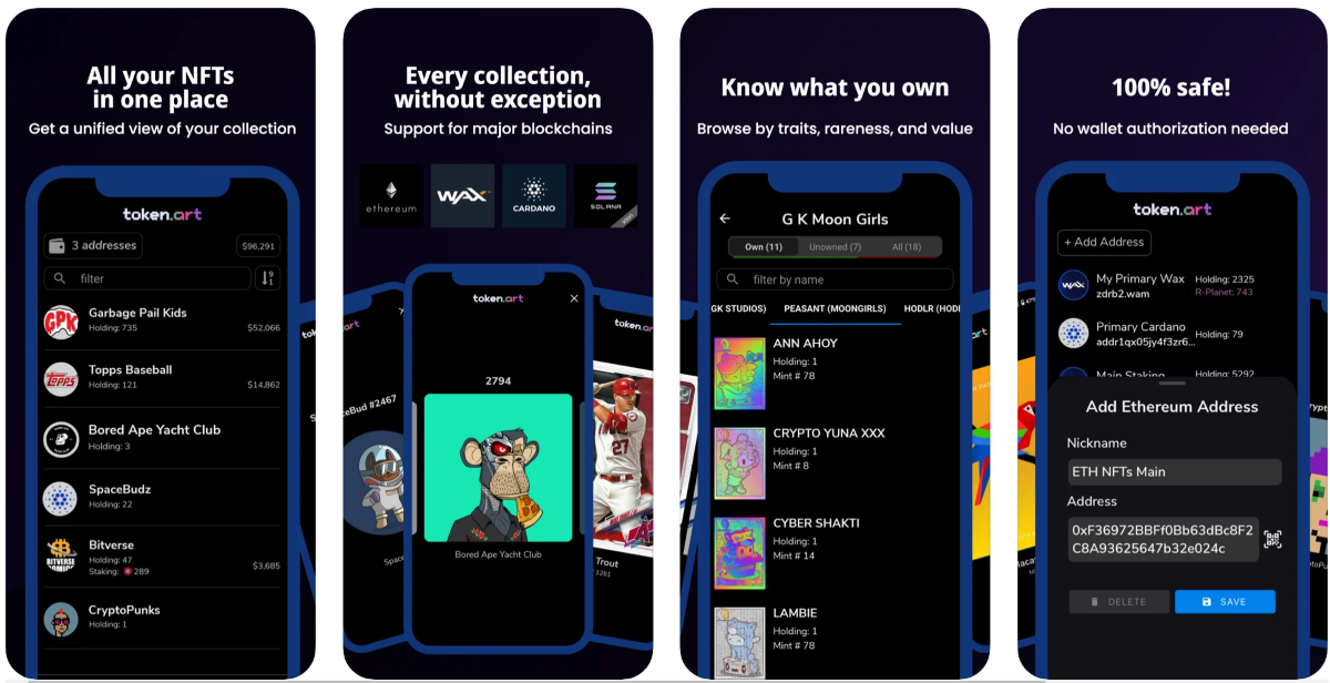 Как только у вас появится несколько NFT, разве вы не захотите ими похвастаться? В конце концов, физические предметы коллекционирования люди очень часто выставляют на всеобщее обозрение. Почему же цифровые предметы коллекционирования не заслуживают этого? С token.art вы легко сможете сделать это.