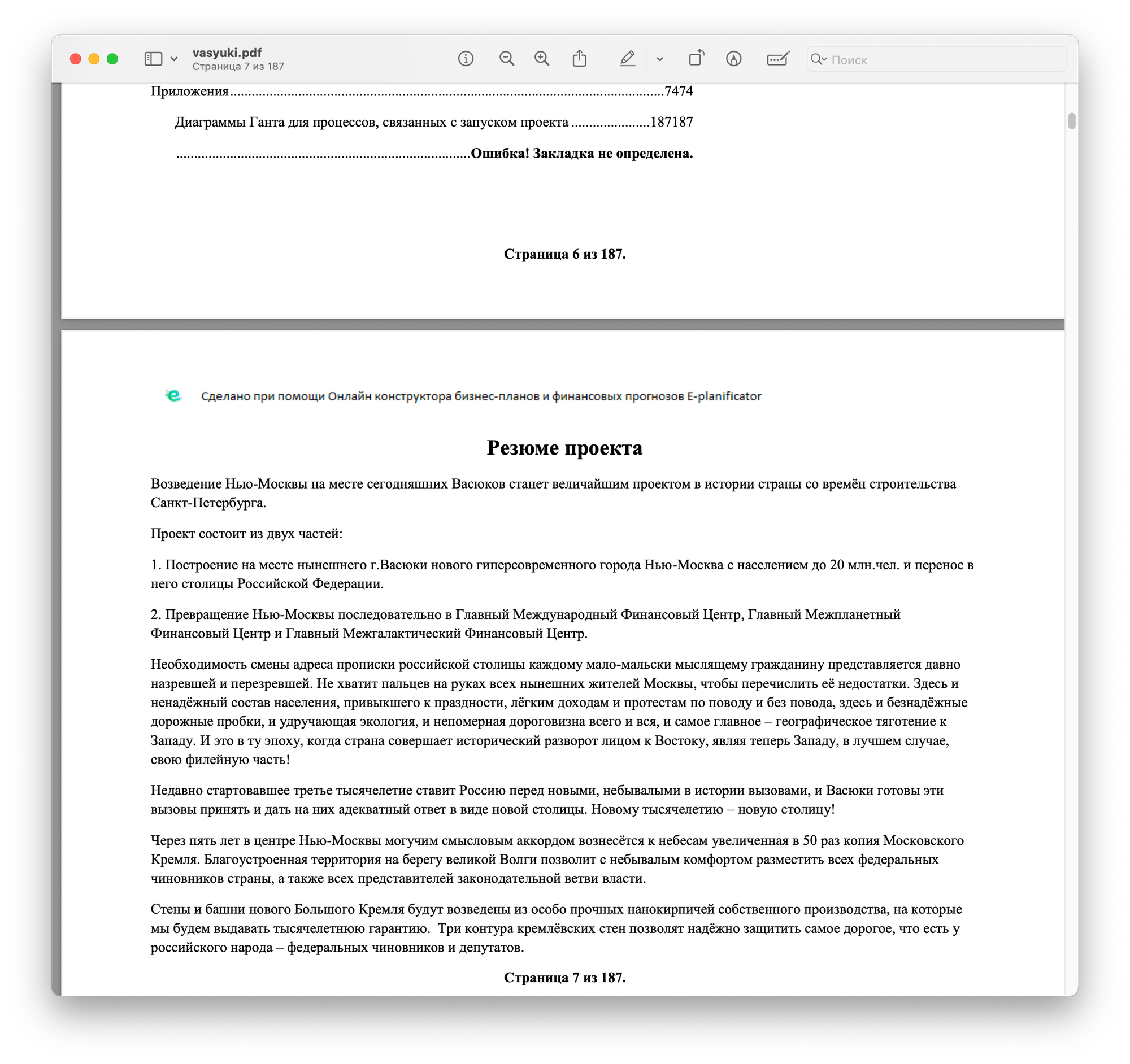 Готовый план оформляется в виде DOC или PDF. Табличные данные преобразуются в Excel.