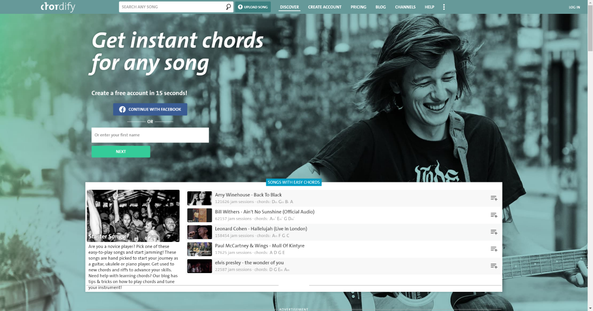 chordify – сервис, который по аналогии с Shazam сможет распознать любой трек и отобразить аккорды для него.
