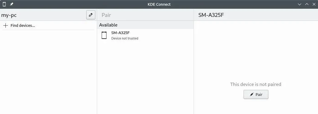 Затем откройте KDE Connect на своём телефоне. У вас должно отобразиться название вашей системы Linux.