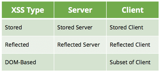 Согласно OWASP Top 10, существует три типа межсайтового скриптинга: