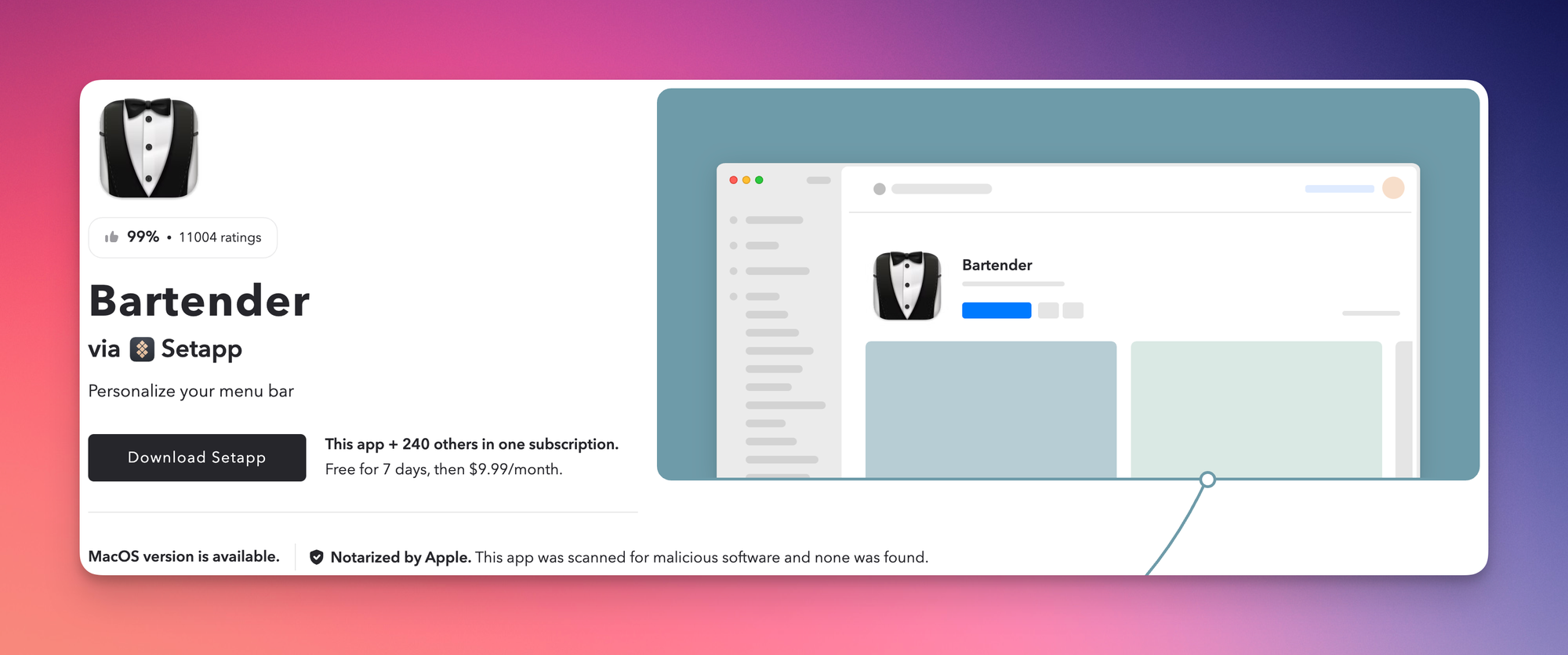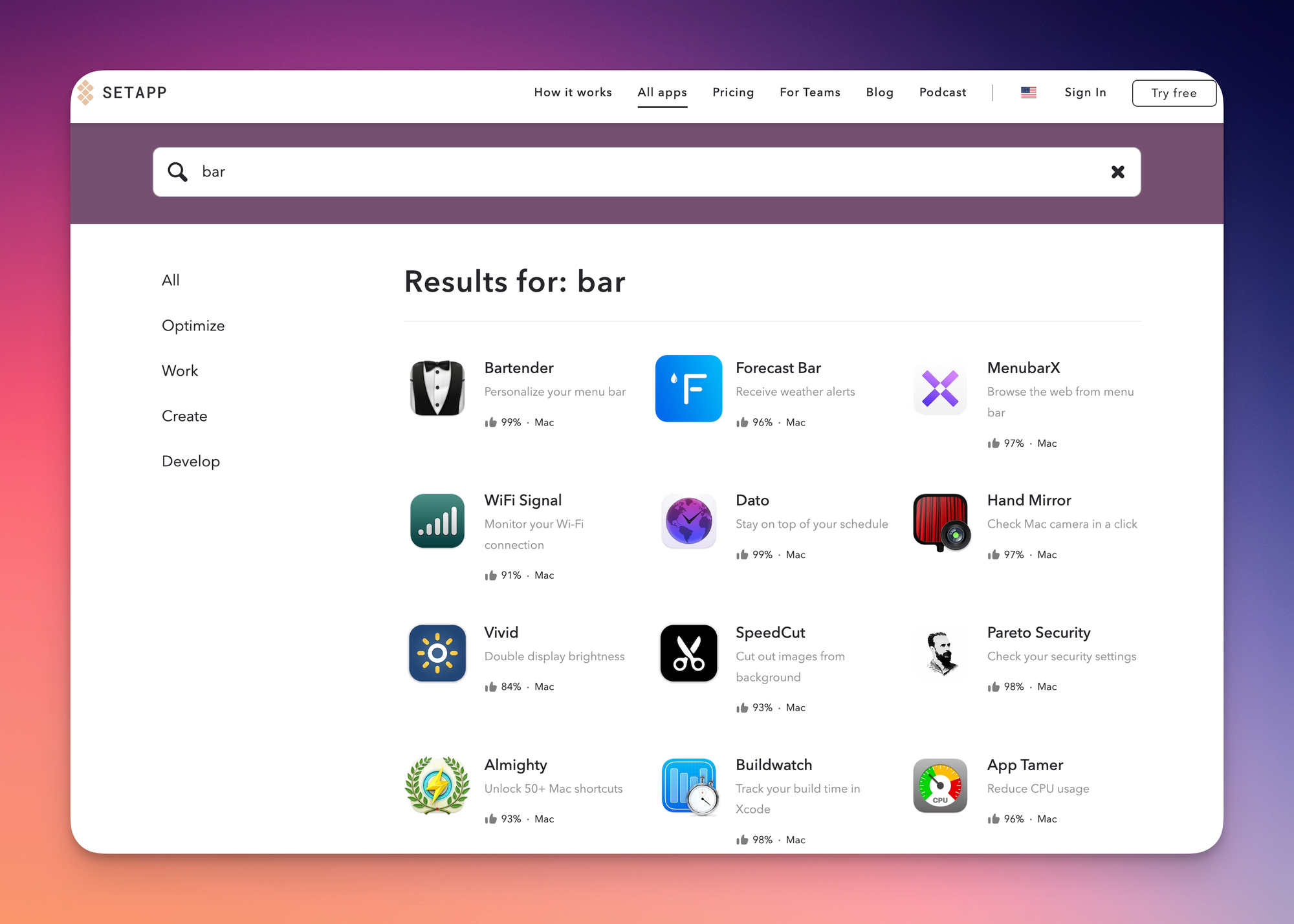 Setapp — это сервис подписки с отборными приложениями для Mac и iOS. Устанавливается он в виде клиента, который позволяет скачивать и использовать любые приложения из каталога (как в App Store). При этом вы будете бесплатно получать регулярные обновления для своих приложений.