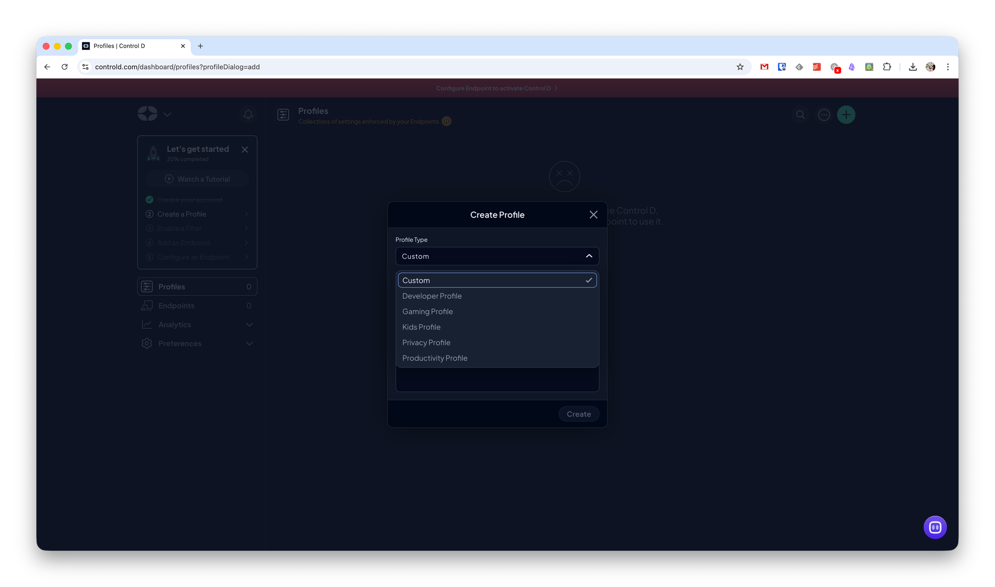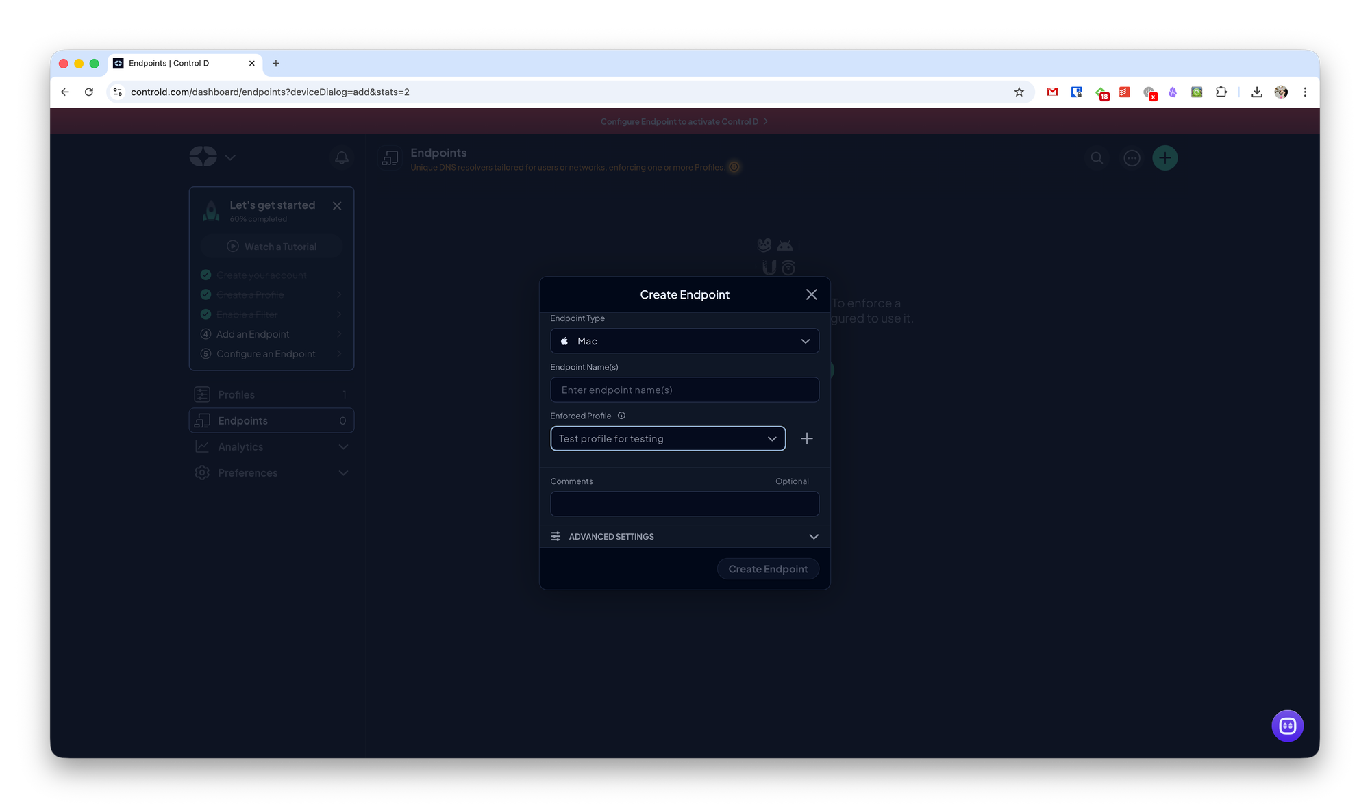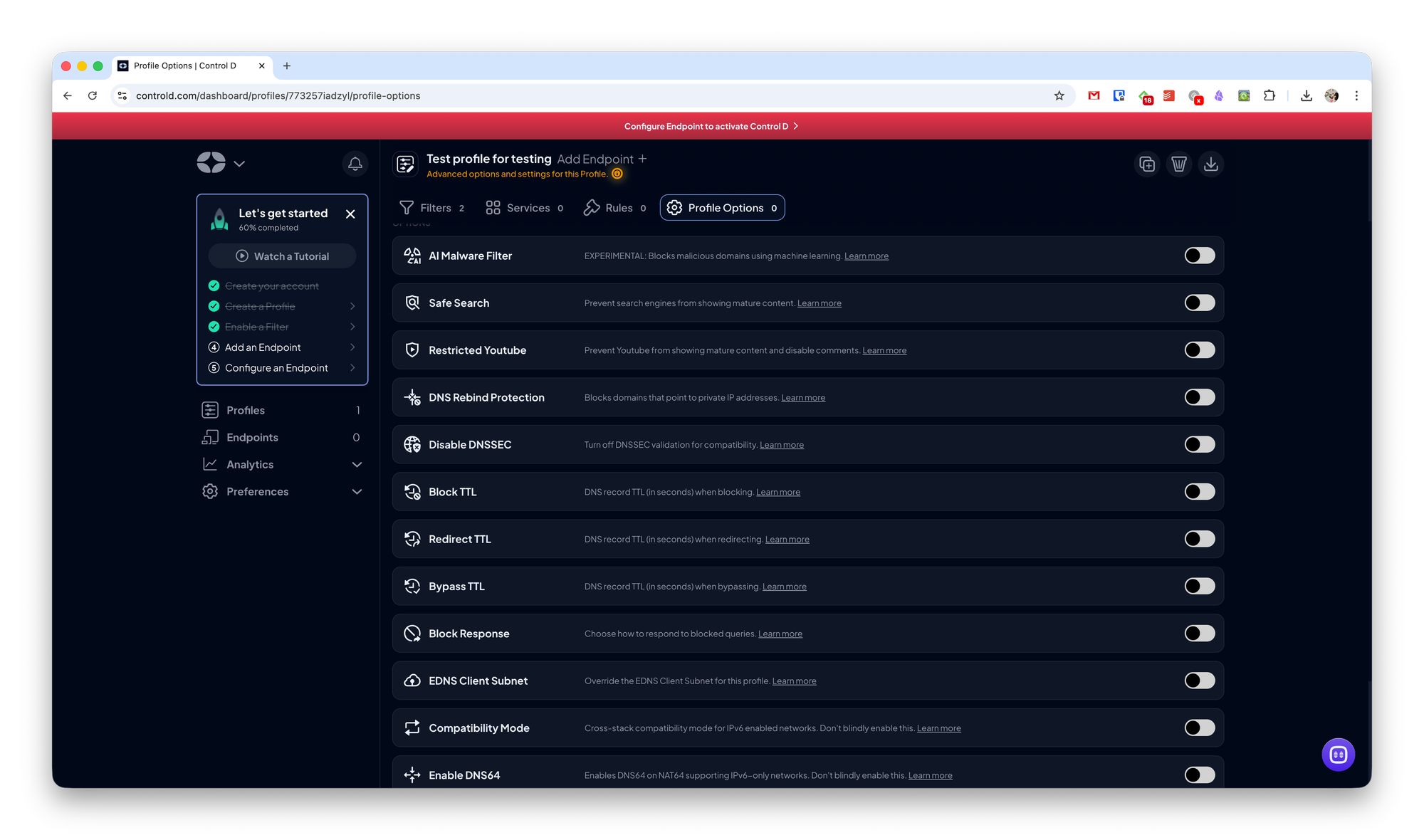 После настройки профиля нужно добавить новую точку подключения в разделе Endpoint. Здесь вы выбираете операционную систему, в которой собираетесь настроить подключение к Control D. Поддерживаются не только все основные операционные системы, но и роутеры. Также нужно указать профиль, с которым будет вестись работа.