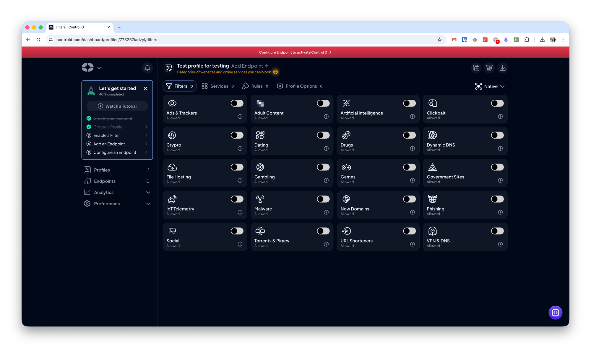 Control D — онлайн-сервис, с помощью которого вы сможете быстро настроить различные правила блокировки сайтов и быстро распространить их на ваши устройства.