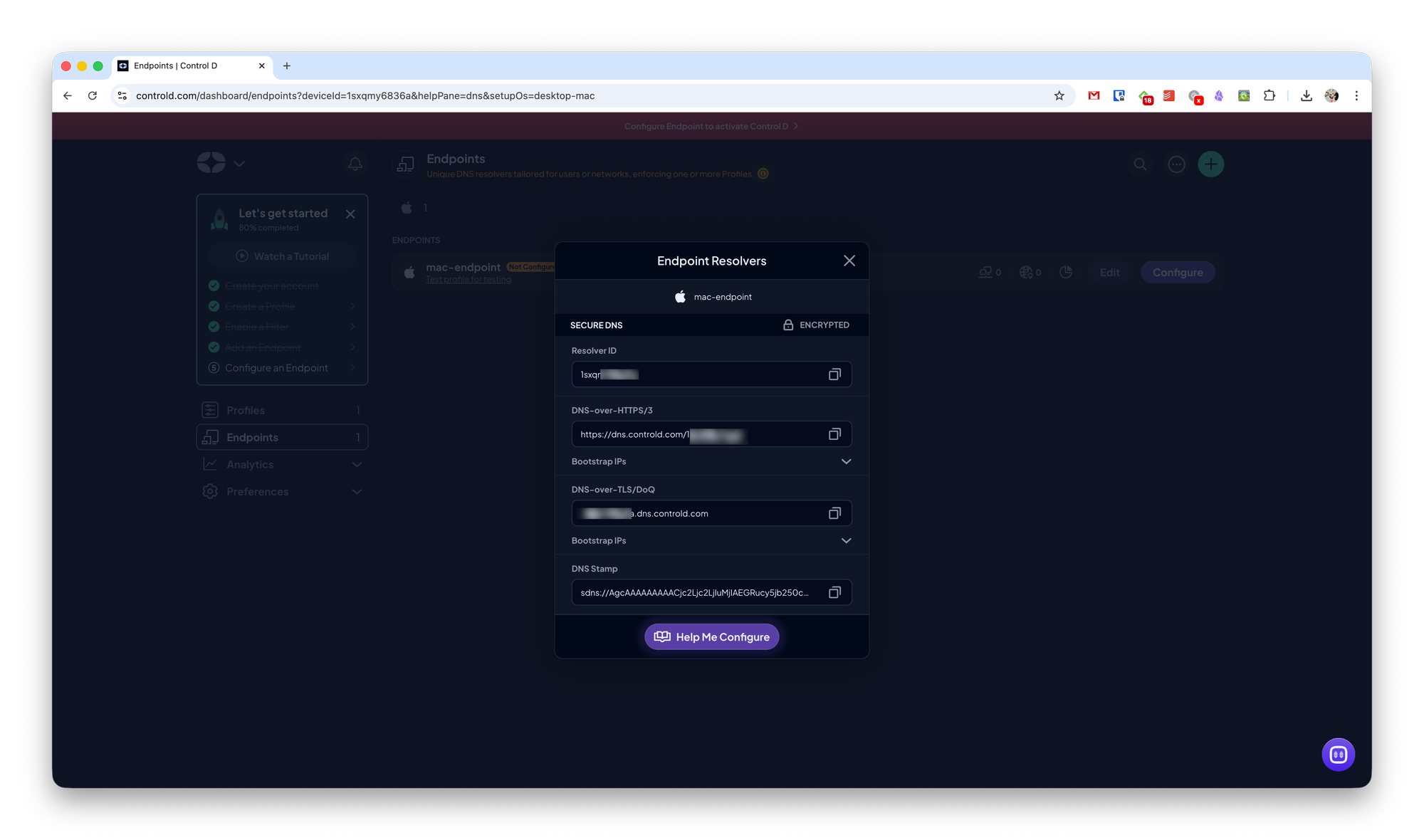 После создания endpoint вы получите все необходимые настройки для подключения к DNS под выбранную операционную систему.