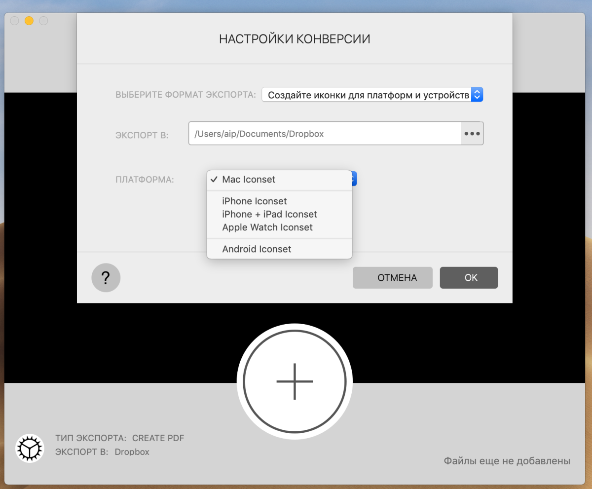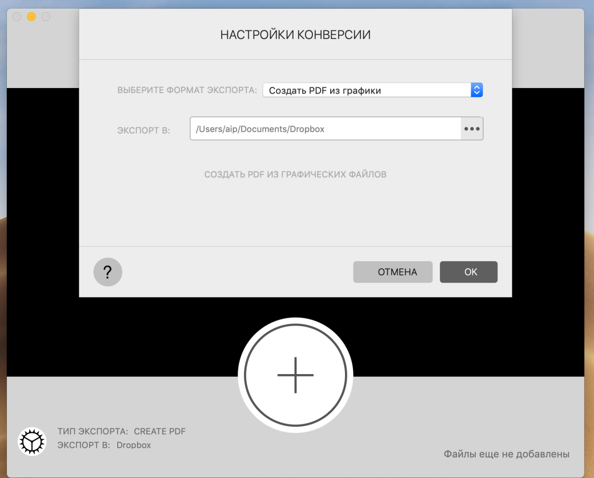 После выбора параметров нужные файлы остаётся просто перенести в окно приложения. Результат будет доступен в папке экспорта.