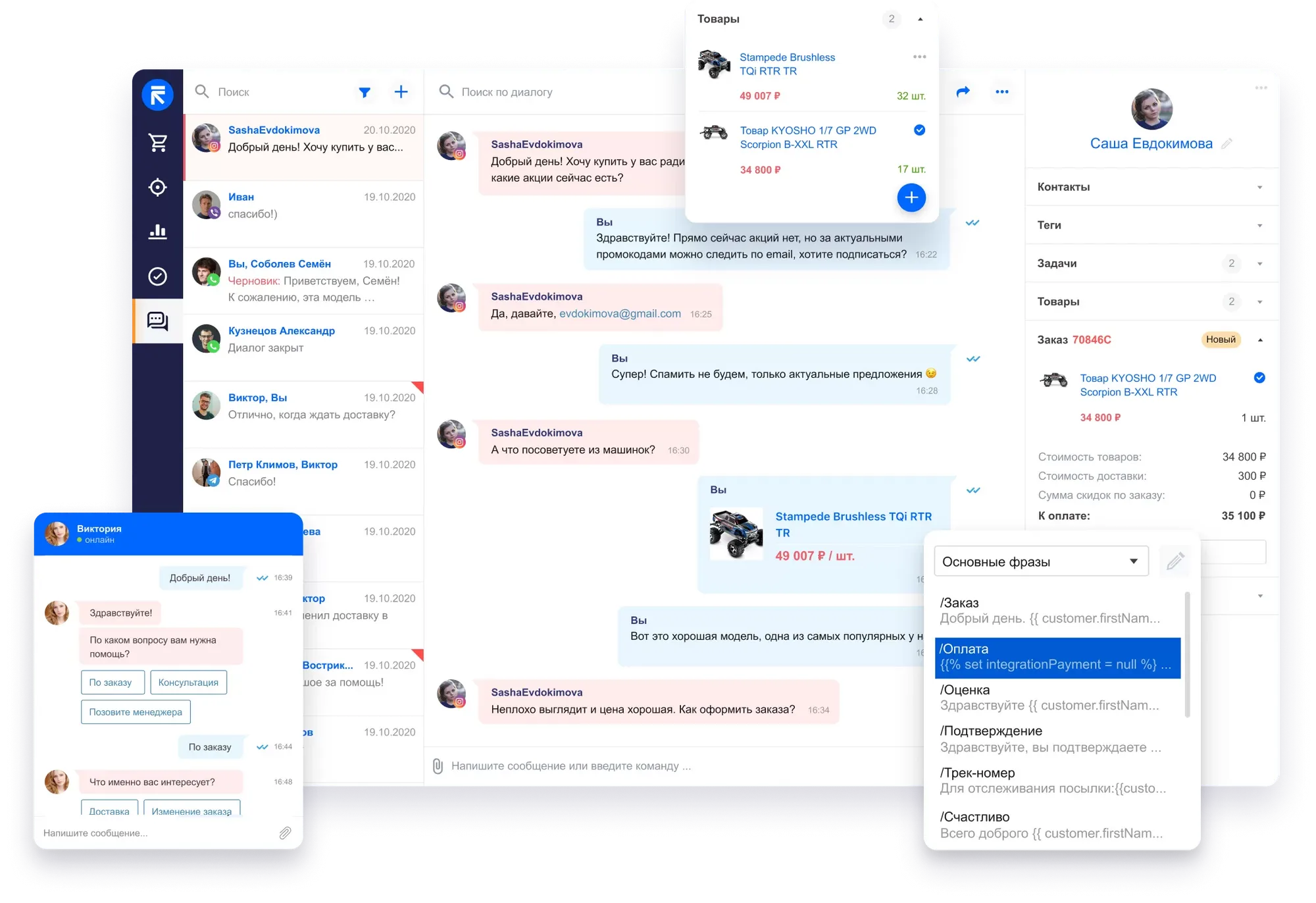 - История общения с покупателями, сбор информации через сайт, приложение, звонки.