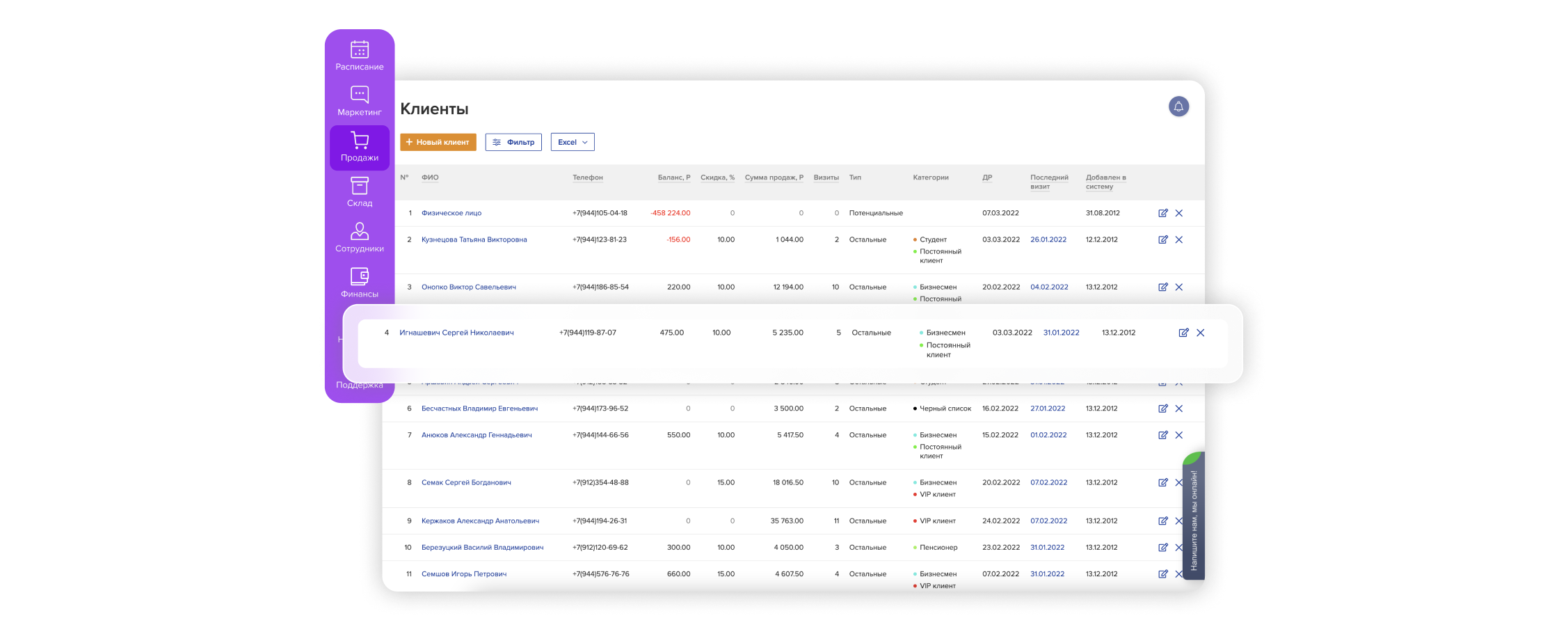 Многофункциональная платформа включает в себя опции управления продажами, расходами и задачами, возможность взаимодействовать с клиентами. Система состоит из набора готовых решений для различных отраслей — примерно 20 программ для бьюти-индустрии, фитнес-клубов, торговых объектов, риелторов.