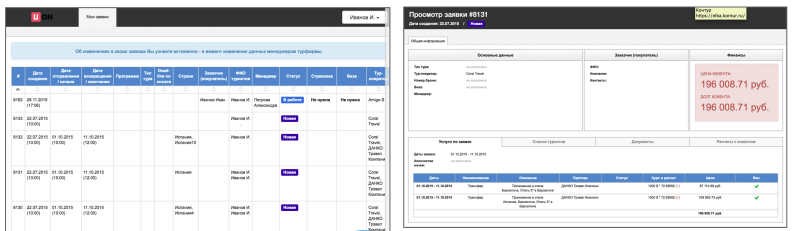 - Упрощает работу менеджеров за счёт автоматизации всех процессов: от расчёта стоимости тура до оформления договора.