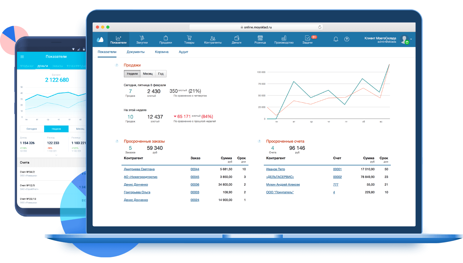 Это комплексная система для торговли, которая предусматривает складской учёт, работу с онлайн-кассами, маркировку продукции. Система подходит для интернет-магазинов, производств, оптовых и розничных точек.