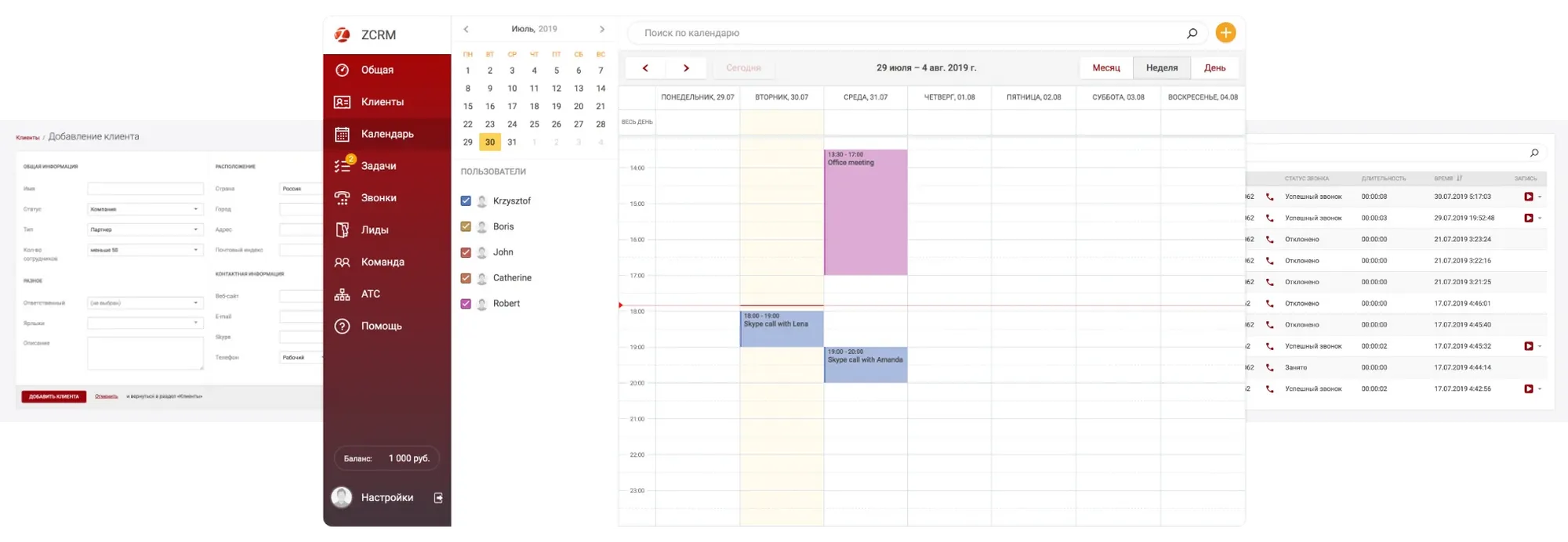 - Встроенная онлайн-телефония позволяет контролировать переговоры с клиентами. История разговоров сохраняется.