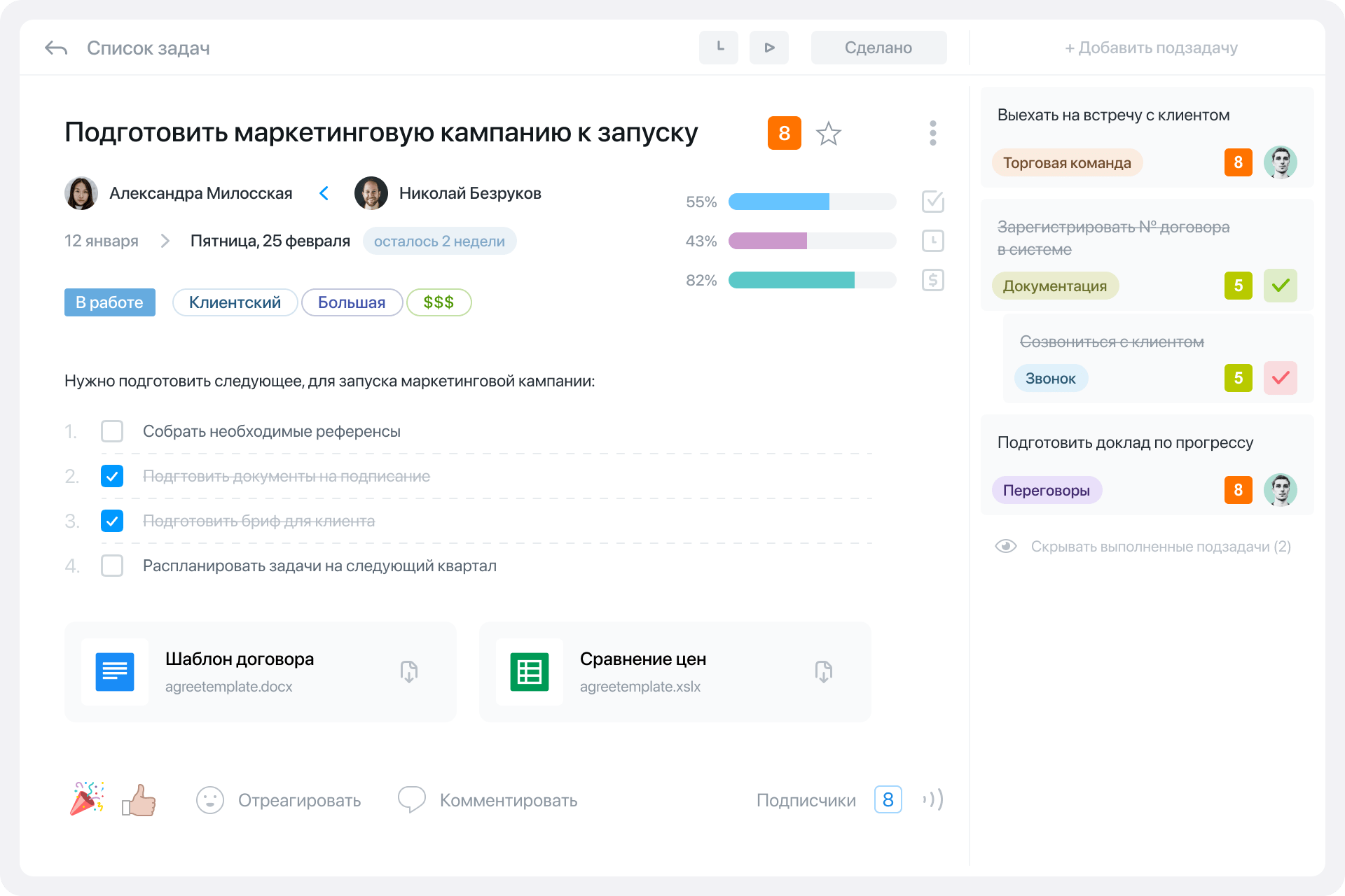 Эта CRM для управления проектами разработана для работы в команде в сфере веб-разработки или онлайн-маркетинга, где особенно важно следовать дедлайнам и организовывать работу нескольких групп сотрудников.