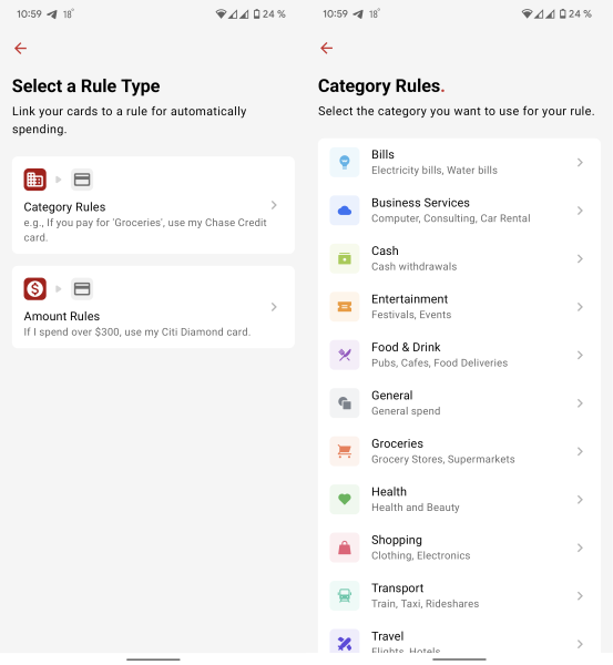 К примеру, при оплате свыше $100 автоматически использовать одну карту, а до $100 другую. Аналогично и для типов трат.