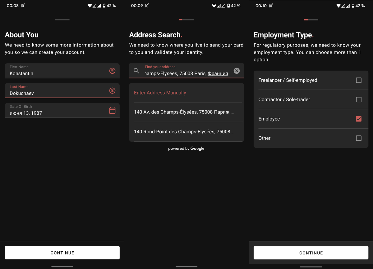 Адрес во Франции можно указать любой, но настоящий. Если у вас есть друзья в этой стране, лучше указать их адрес. Ведь именно туда будет доставлена физическая карта Curve. Также на шаге Employment Type нужно выбрать Employee, иначе виртуалки вам не видать.