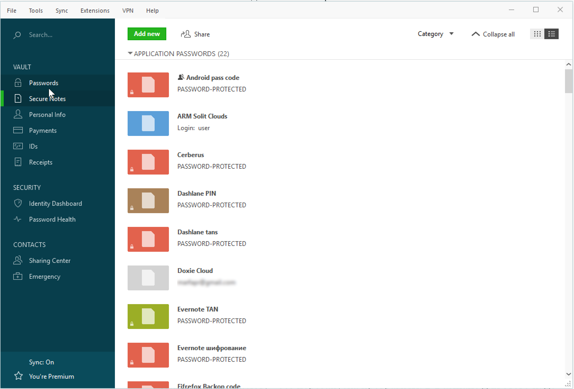 Удостоверения личности, личная информация и чеки о покупках — абсолютно ненужная функция в Dashlane (по крайней мере в России). Чеки сохраняются только на зарубежных сайтах, автозаполнение личной информации на сайтах работает криво. А удостоверения личности вообще не имеют никакого смысла.