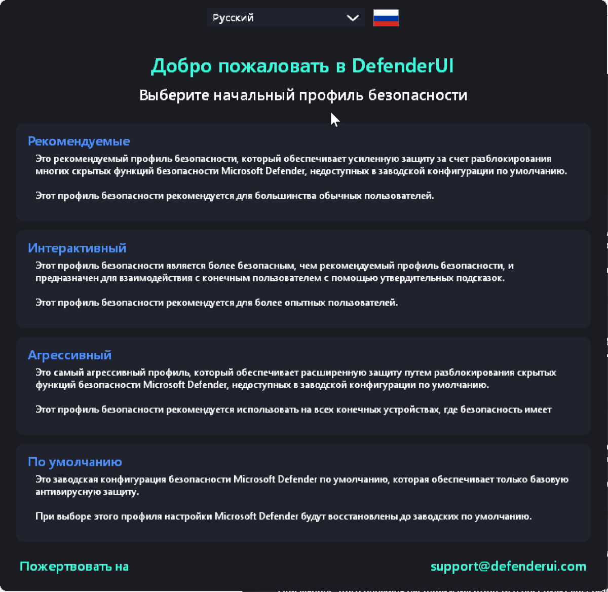 DefenderUI добавляет альтернативный интерфейс для Windows Defender. Теперь можно более просто управлять его настройками, а также управлять недокументированными возможностями.
