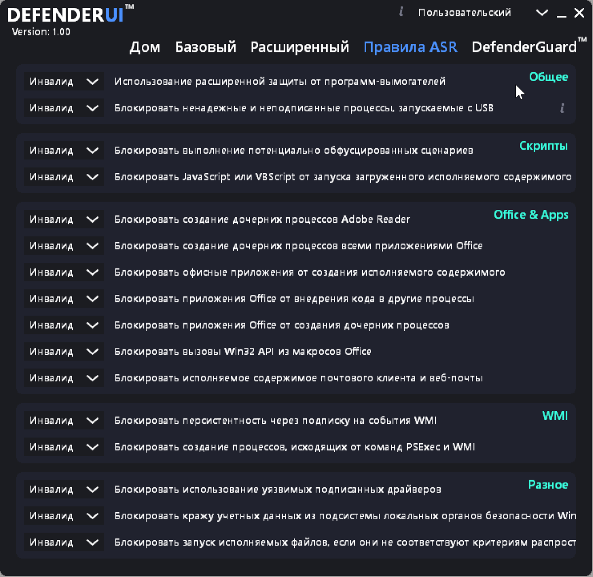 ASR или правила сокращения направлений атак создана для определения действий при потенциально вредоносных событиях. Лучше этот раздел не трогать, если вы не уверены в своих силах.