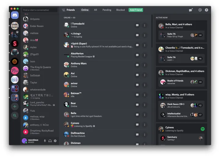 Естественно, Discord позволяет создать список друзей, с которыми вы сможете общаться вне серверов.