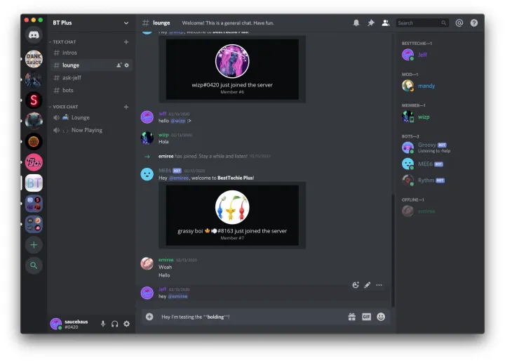 Серверов, к которым вы можете присоединиться, может быть сколько угодно. Все они будут отображаться в левой части приложения — просто кликните по нужному, чтобы зайти туда.
