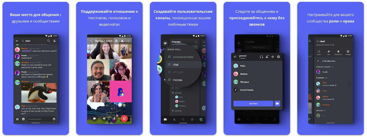 В мобильном приложении вы сможете делать практически всё то же самое, что и в десктопной версии: заходить на серверы, общаться с друзьями, совершать видео- и голосовые звонки и т.д.