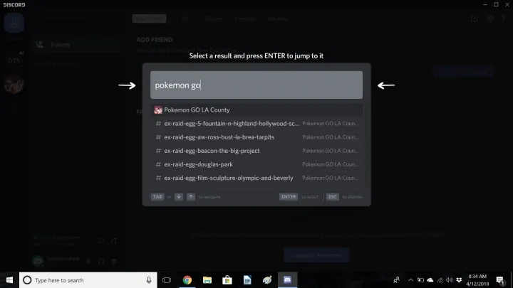 Также можно воспользоваться поиском в верхней левой части экрана, чтобы найти друга по его юзернейму, который выглядит примерно так: HelpyHelpnotbot#8877.