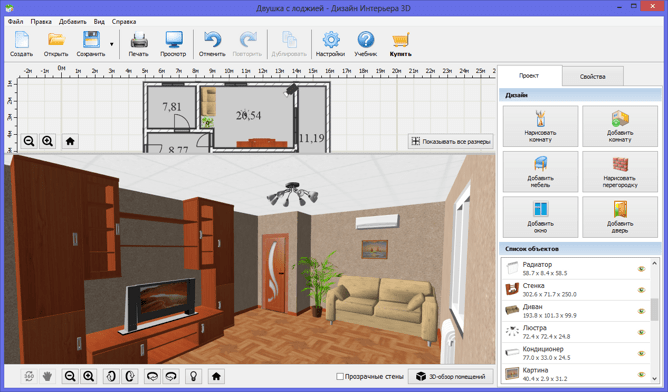 К счастью, технологии не стоят на месте, и на сегодняшний день доступна программа, которая позволяет без особого труда детально воссоздать 3D-макет абсолютно любой квартиры. Название программы наиболее полно и точно отражает её главную возможность. Конечно же, речь в данной статье пойдёт о программе от отечественных разработчиков — «Дизайн Интерьера 3D».