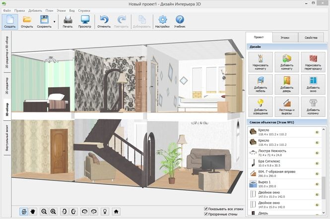 Даже если вы новичок, не беда, ведь в программе имеется удобный учебник, прочитав который вы очень быстро разберётесь со всеми функциями и режимами, которые предлагает вам «Дизайн Интерьера 3D».