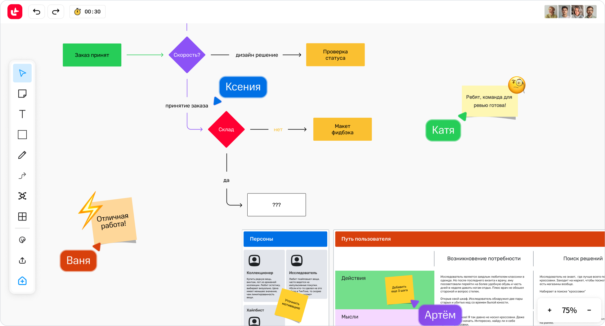 Это решение вынудило пользователей искать другие платформы. И хотя Миро планирует ограничить работу только по коммерческим тарифам, сохраняется вероятность её полного ухода с отечественного рынка. В таких условиях многие обратили внимание на предложения отечественных компаний. Их программное обеспечение (ПО) не только способно составить конкуренцию признанным лидерам сферы, но и предоставить клиентам дополнительные возможности.