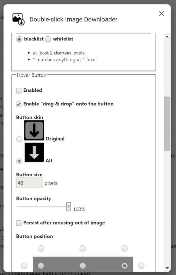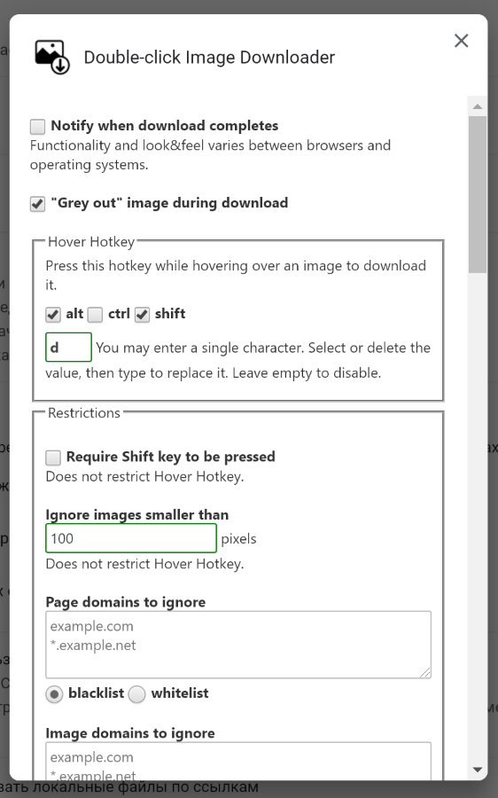 - выбрать сайты или домены картинок, где расширение не будет работать;