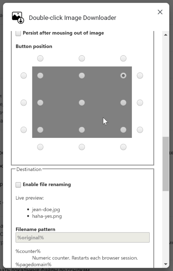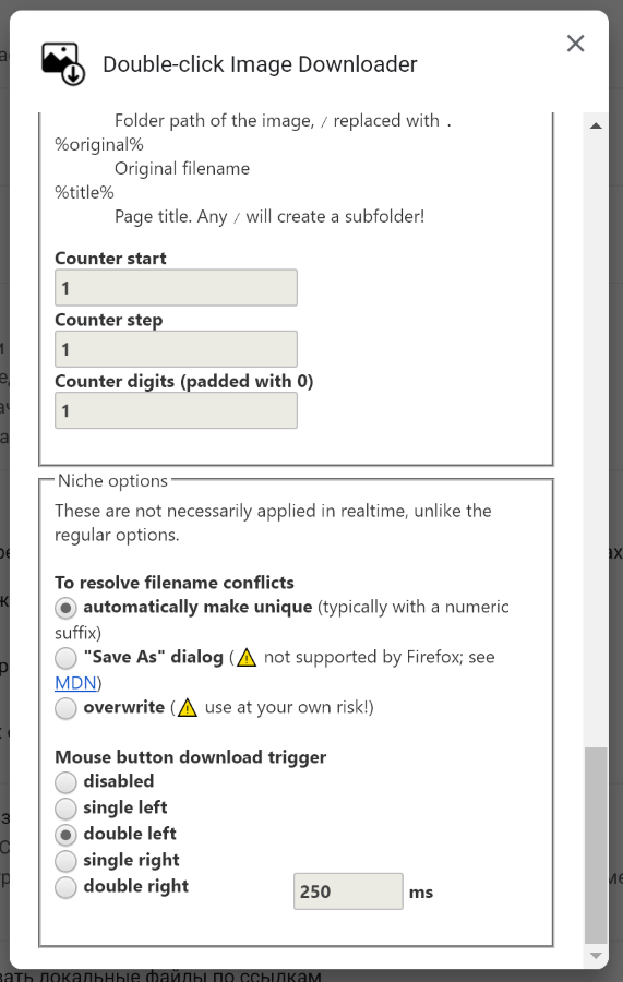 Также можно активировать скачивание по горячей клавише. Поведение расширение и загрузок также тонко настраивается: