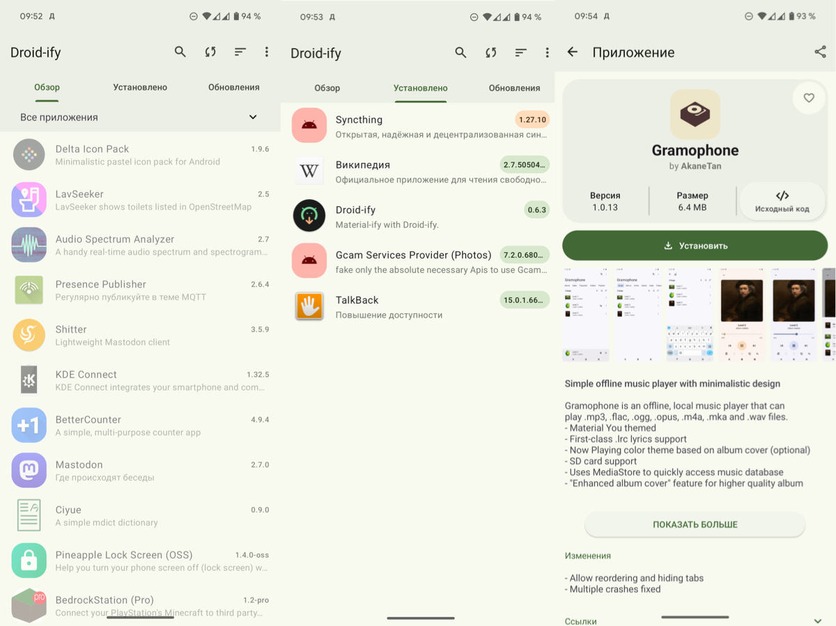 Droid-ify — клиент с открытым кодом, который в целом ничем не отличается от других подобных приложений. Его фишка в следовании канонам Material UI.
