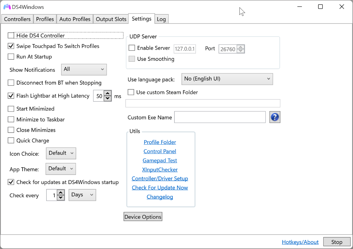 - Опция Check for DS4Windows Update at Startup проверяет обновления в процессе запуска программы, при этом вы можете выбрать периодичность такой проверки.