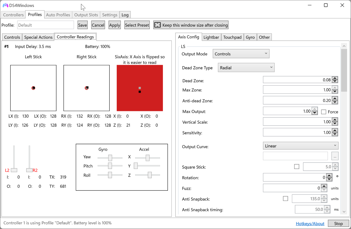 С помощью Axis Config можно управлять осями. Для кнопок и стиков вы можете устанавливать и записывать макросы, к примеру, сочетание определённых кнопок или кликов.