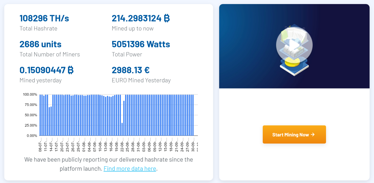 Сама компания зарегистрирована на Кипре, однако дата-центры (их совокупный хешрейт — 150,5 Ph/s) находятся в Сибири. Доступен майнинг только двух криптовалют — ETH и BTC.