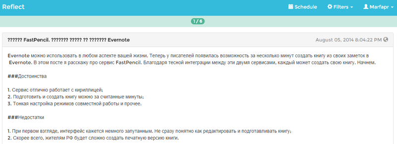 Сервис Reflect позволяет вам выбрать заметки из всего вашего аккаунта Evernote, которые вы хотите запомнить. Конечно же, он берет не все подряд заметки, а в соответствии с фильтрами, которые вам и будет предложено настроить на первом шаге.