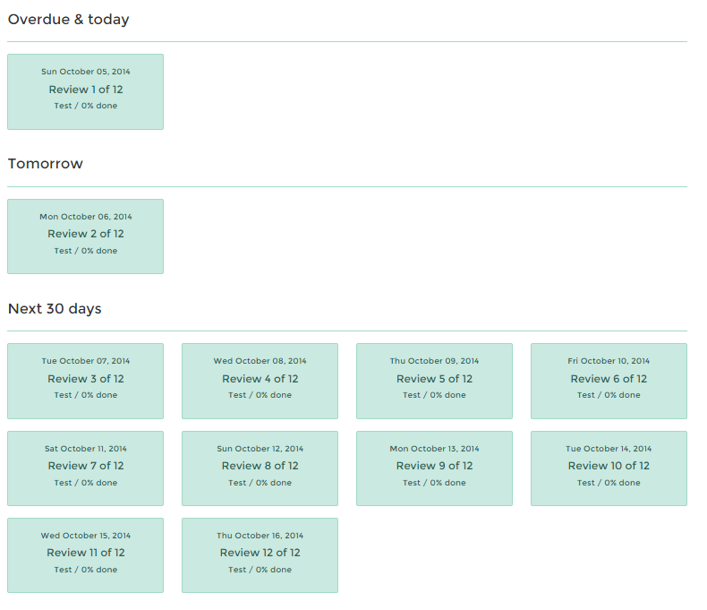 Reflect может ежедневно присылать на почту напоминание о том, что вам нужно пройти обучение. После того, как вы настроите нужные вам фильтры, то на странице сервиса вы увидите несколько карточек, расположенных по дням: