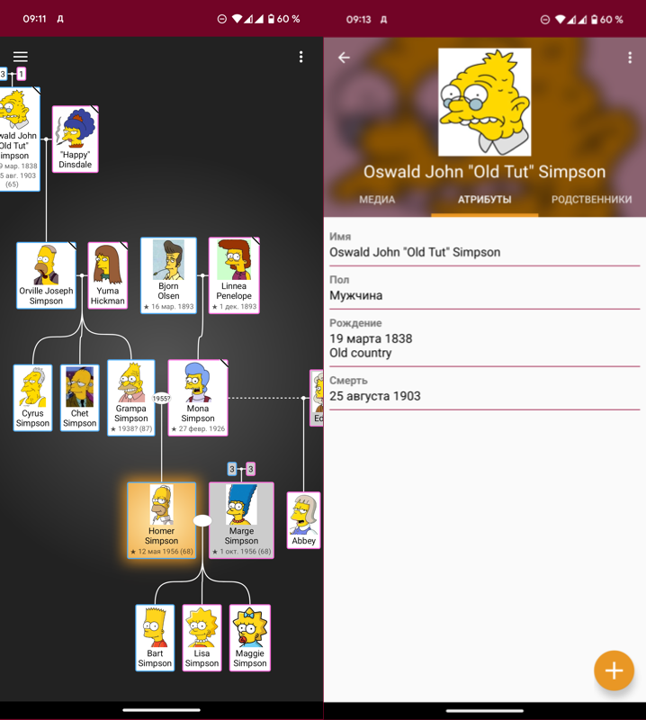 Что касается возможностей, тут есть весь необходимый стандартный набор. Вы можете добавлять членов семьи и выстраивать между ними родственные связи.