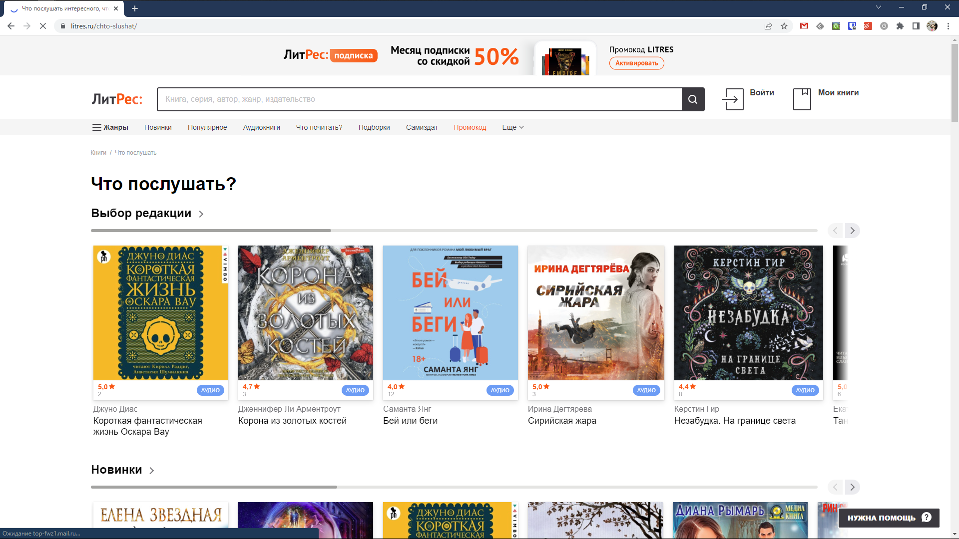 Это, наверное, наиболее известный ресурс, который предлагает популярная веб-библиотека. Любую из аудиокниг содержит и официальный сайт «ЛитРес», на котором вы можете их приобрести и послушать. Но всё же комфортнее пользоваться приложением для смартфона «ЛитРес: Слушай!», чтобы воспроизводить книги в любом удобном месте.