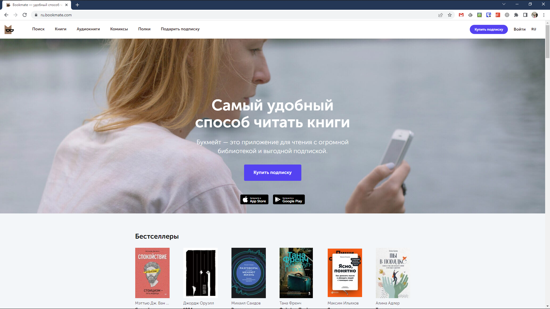 Очередным приложением, которое вначале предназначалось исключительно для чтения текстовых книг, является Bookmate. В настоящее время здесь есть и аудиоконтент, но стоимость подписки тоже кусается — 399 руб. ежемесячно.